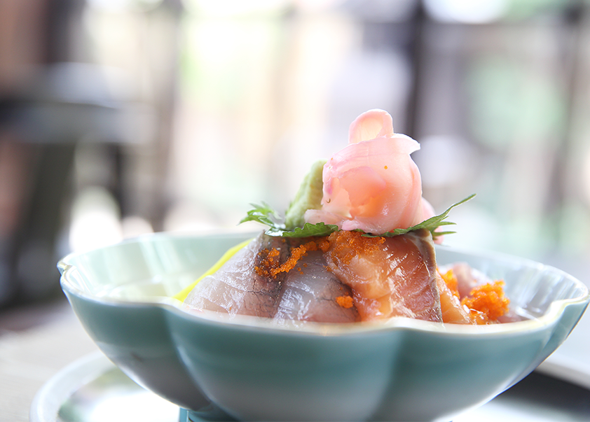 torched salmon, crab, avocado, cucumber w/Japanese citrus, fish egg
